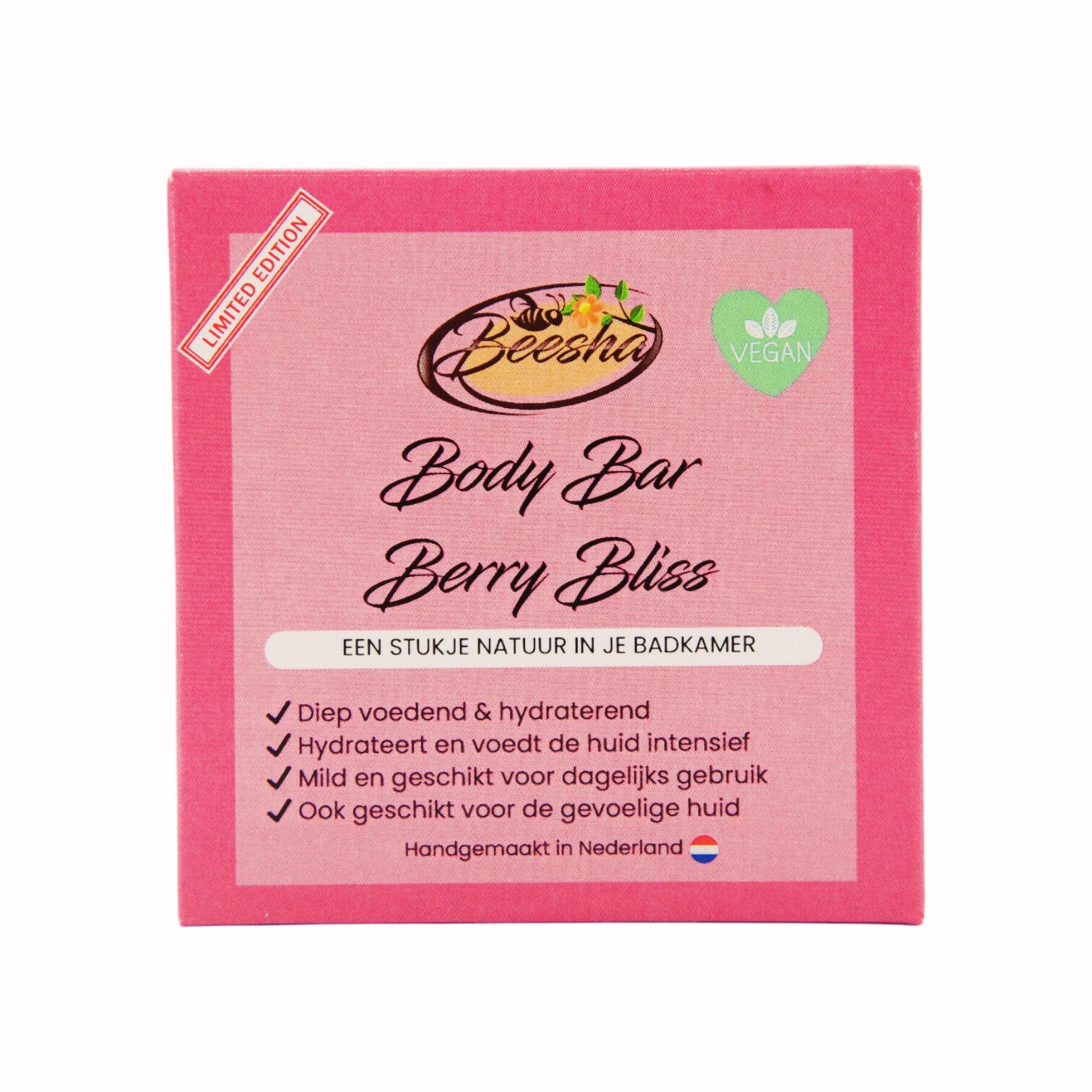 Ervaar de ultieme verzorging met onze Body Bar Berry Bliss, verrijkt met drie voedende boters die je huid intensief hydrateren en beschermen. Deze 100% natuurlijke en plasticvrije body bar is een duurzame keuze voor een zijdezachte huid. Ontdek de weelderige geur van Blackberry: rijk, fruitig en vol zoete sappigheid, alsof je verse bessen rechtstreeks uit de zomer plukt. Een verfijnde geur die frisheid en luxe moeiteloos combineert.